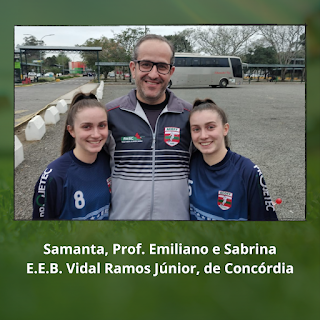 O outro treinador que tem gêmeas em sua equipe é o professor Emiliano, da Escola Estadual Vidal Ramos Júnior, de Concórdia, do futsal.